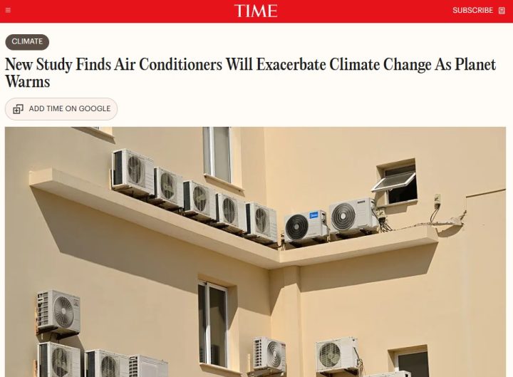 TIME Magazine recently posted an article titled “New Study Finds Air Conditioners Will Exacerbate Climate Change As Planet Warms,” claiming that expanding air conditioner use will harm the planet by increasing warming, and that people should “transition” away from refrigerants and use less AC. This is nonsense. Even according to their own models, massive expansions in AC use would only result in marginal temperature change. By contrast, modern air conditioning has been demonstrated to save thousands of lives each year.