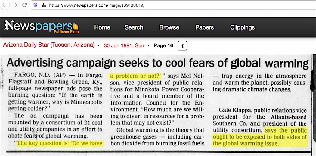 Such is where the psychological projection angle comes in. You imply our side demands conformity, when in fact it is your side demanding that. We present both sides and ask that you make up your own mind based on the facts. All of the facts, not half of them. The ‘energy industry used disinfo campaigns back in the 1991s‘ to push only their side?? Provably false.