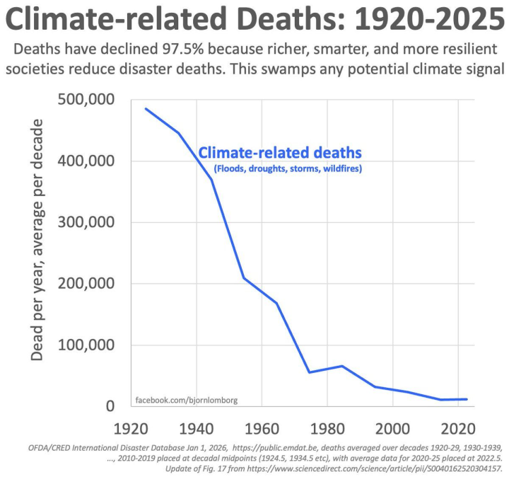 Of course they’ve declined because humans take preventive measures when climate/environmental threats increase. The alarmists want us to believe that we should just sit on our hands helplessly when we should be renouncing fossil fuels, swearing off red meat, ending air travel, adopting wind and solar energy and doing whatever it takes to head off what’s largely a non-problem to begin with. Instead, we build new dams, dikes and floodways to forestall rising waters. We develop more weather-resistant crops to deal with droughts. We build more durable structures to withstand violent storms. We restrict settlements in zones where rising waters are common, etc. Only the doomsday cultists want us to just wring our hands and wait for some apocalypse to wipe us out so that they can claim, “Didn’t we warn you?”